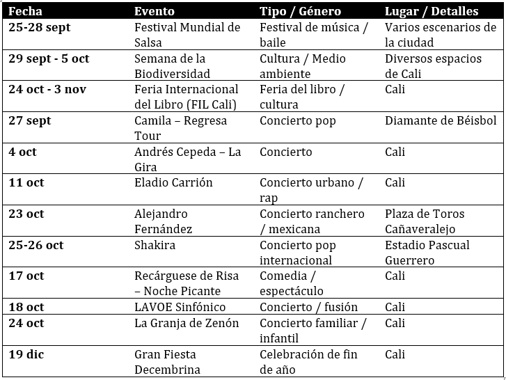 Cali Vibra todo el año con fiestas , conciertos y actividades que reflejan su alegría y diversidad.